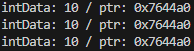 cout << "intData: " << intData <<" / ptr: " << ptr << endl;