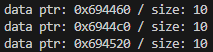 void info() { cout << "data ptr: " << data <<" / size: " << sz << endl; }